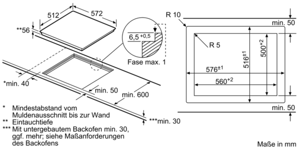 - Min. Arbeitsplattenstärke: 30 mm
