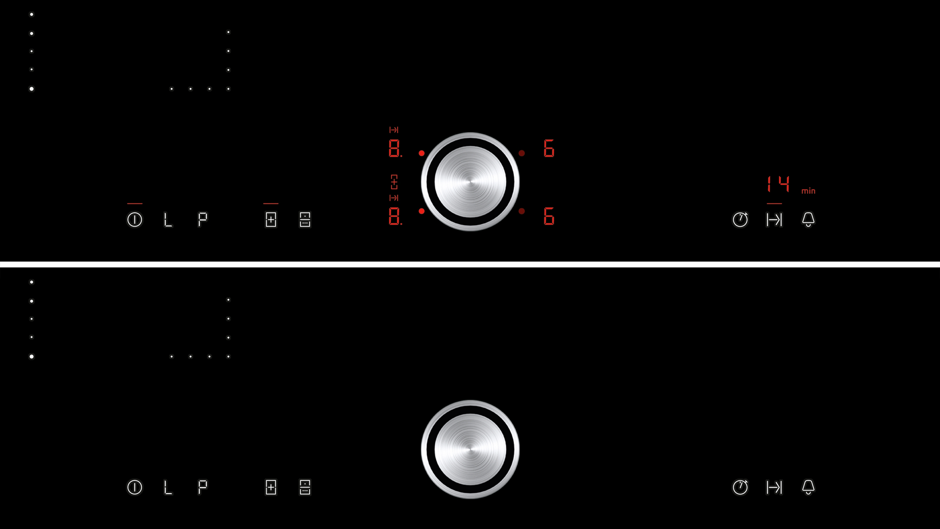 CombiZone mit zwei Nutzungsmöglichkeiten: 2 einzelne Induktions-Kochzonen oder 1 große verbundene Induktions-Kochzone