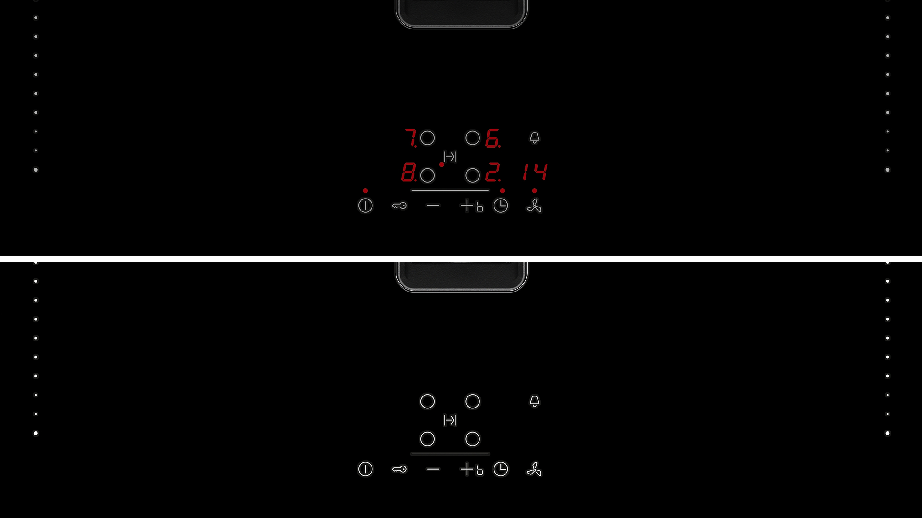 - 2-stufige Restwärmeanzeige je Kochzone: Zeigt an welche Kochzonen noch heiß oder warm sind.