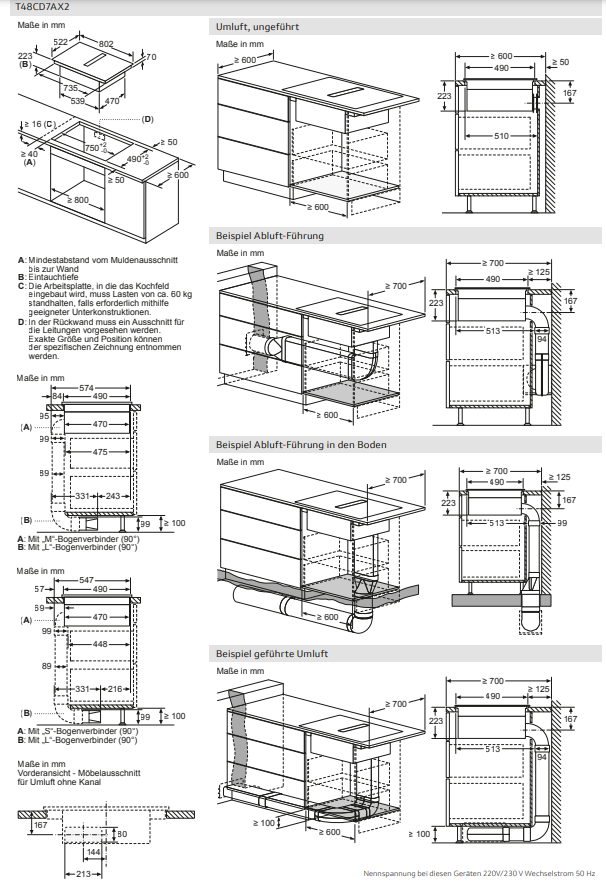 - Erforderliche Nischengröße (HxBxT mm : 223 x 750 x (490 - 490)
