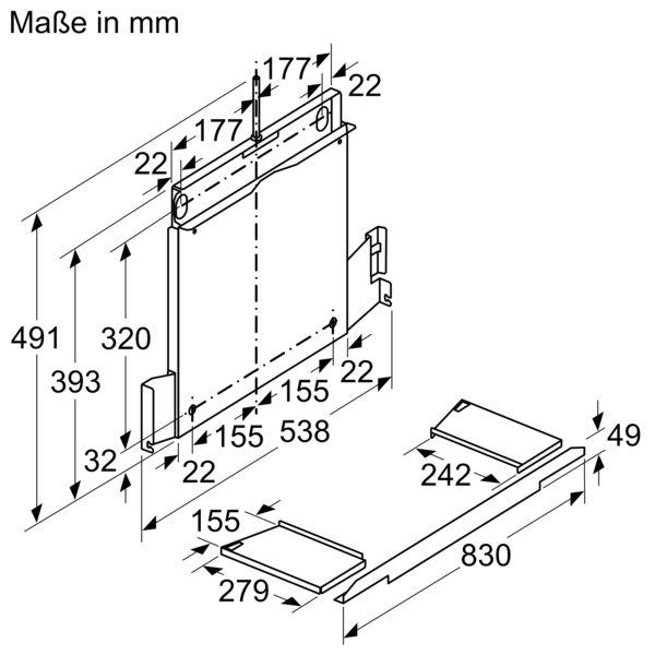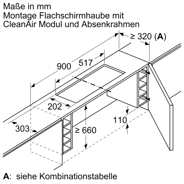 - Der Absenkrahmen läßt die Flachschirmhaube komplett im Oberschrank verschwinden