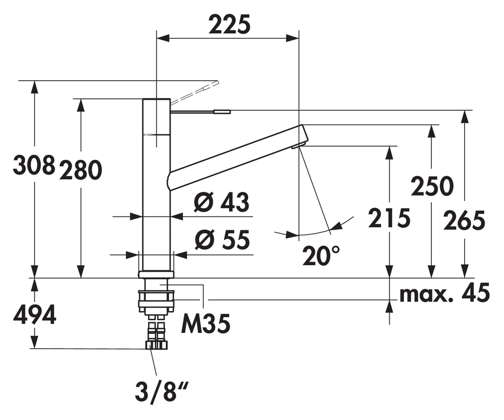 Höhe gekippt nur 55 mm
