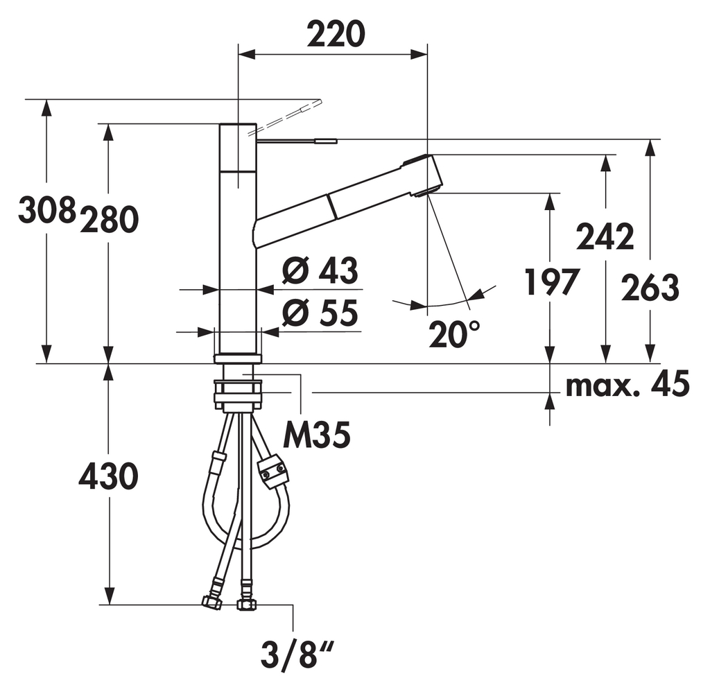 KWC Einhebelmischer. Mit schwenk-/herausziehbarer Schlauchbrause (Strahl/Brause umstellbar) und Keramikkartusche.