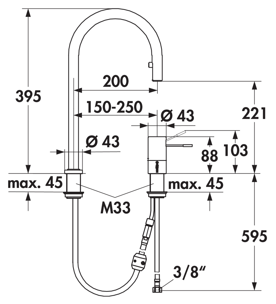 KWC Zweiloch-Einhebelmischer. Mit hohem schwenk-/herausziehbarem Auslauf, separat zu positionierendem Hebel und Keramikkartusche.
