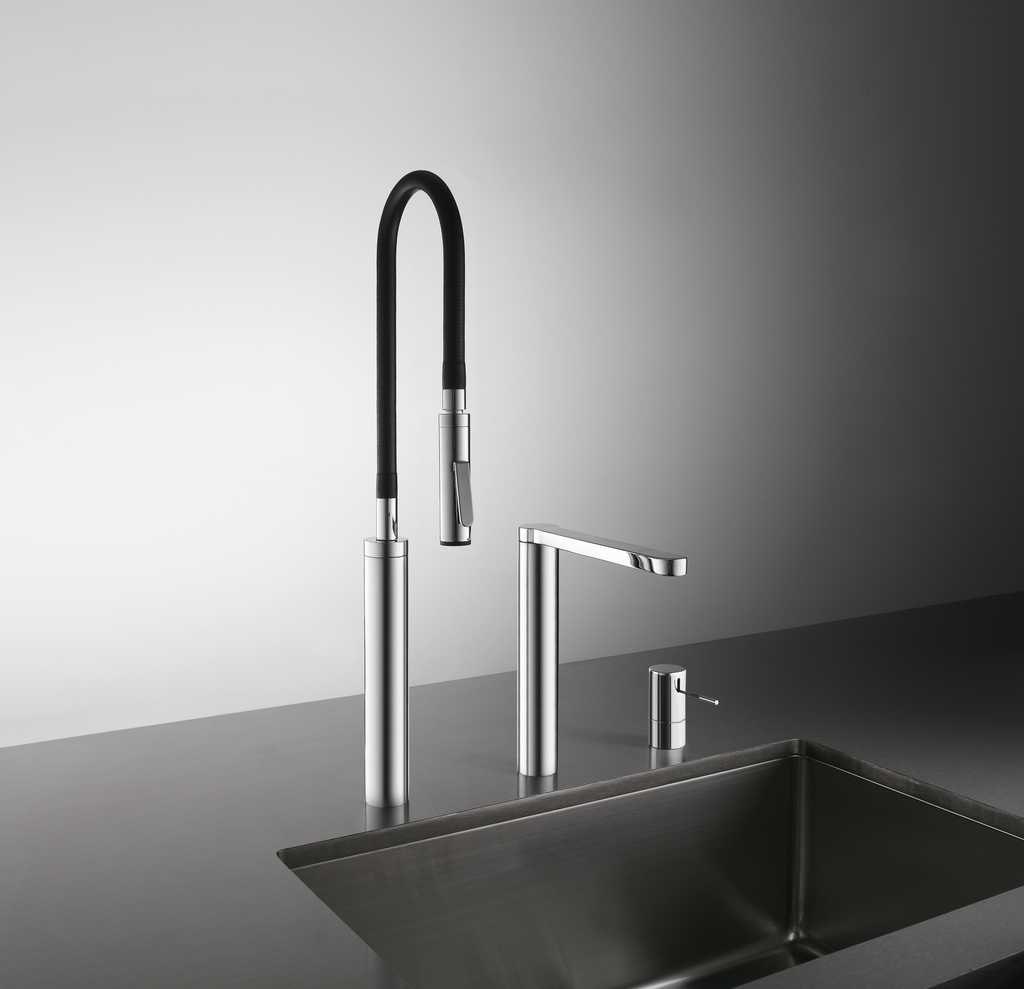 KWC Zweiloch-Einhebelmischer. Mit schwenkbarem Auslauf, separat zu positionierendem Hebel und Keramikkartusche.