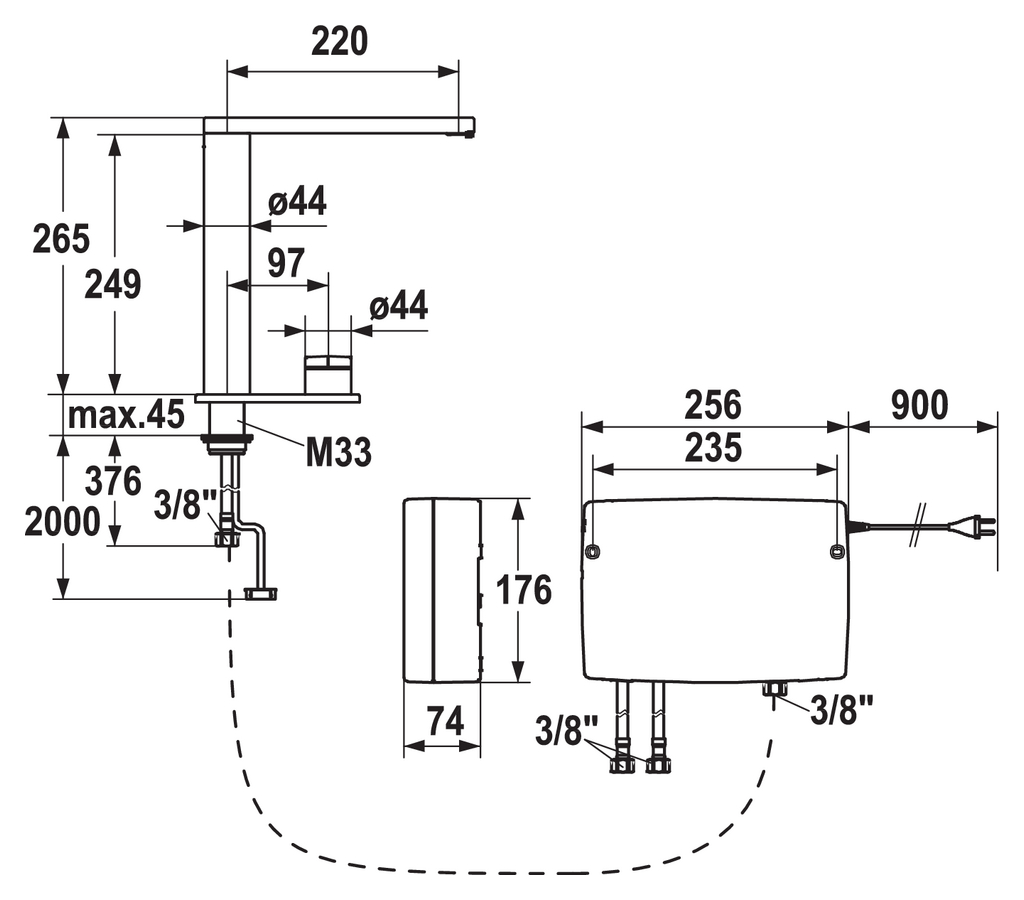- flexible Anschlussschläuche 3/8"