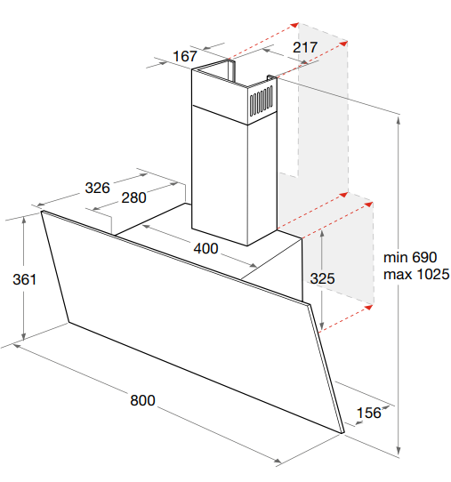DGHVP 83 LT K/1 - Dunstabzüge - Wandesse aus hochwertigem schwarzem Glas zur Montage direkt an die Wand