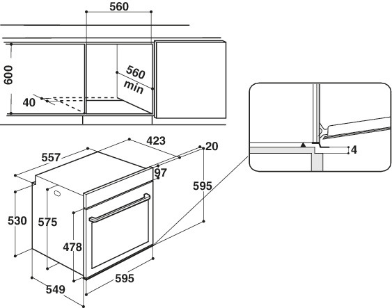 - Nischenmaße (H x B x T): 600 x 560 x 555 mm