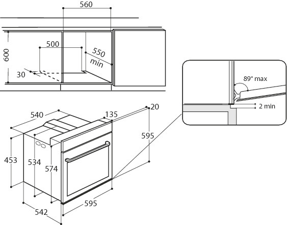 - Nischenmaße (H x B x T): 600 x 560 x 550 mm