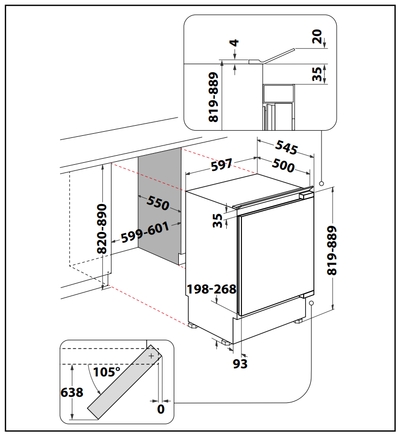 | Tiefe Produkt bei geöffneter Tür (90°): | Nicht zutreffend |