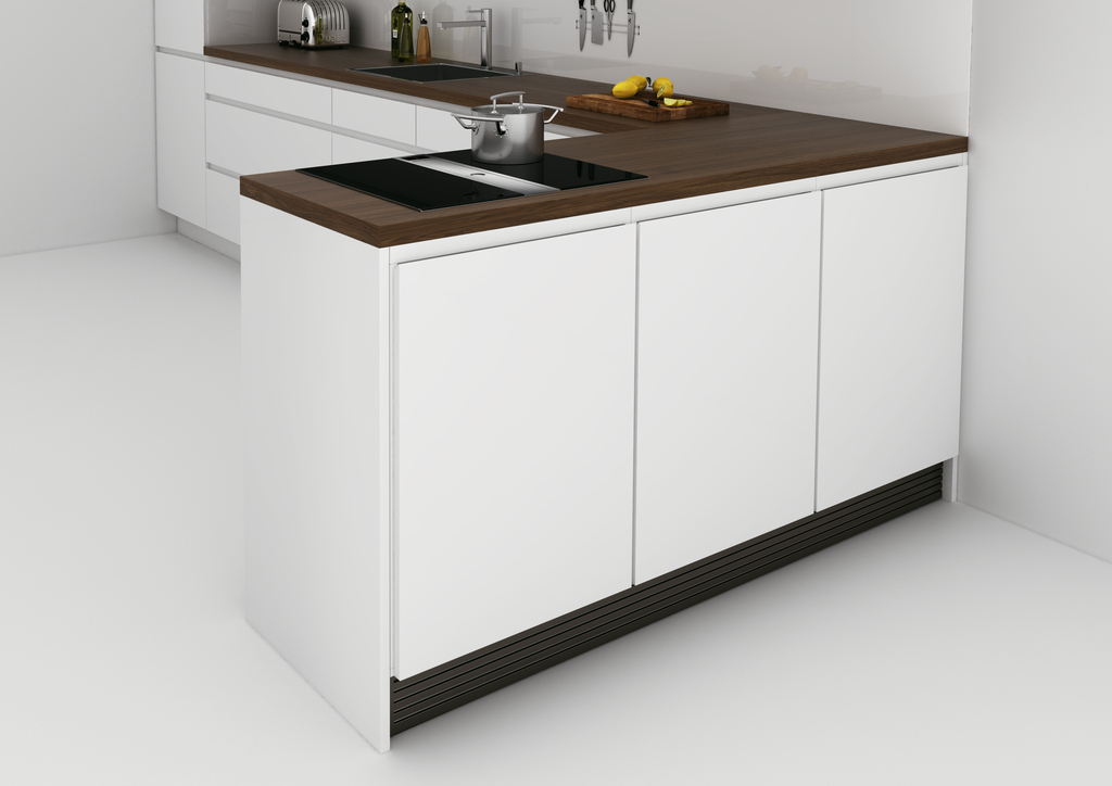 Das Aluminium-Lamellensystem Presa ermöglicht eine optimale Luftzirkulation und Durchlüftung des Küchensockels. Höchste Funktionalität und Gestaltungsfreiheit durch individuelle Höhenmaße von 100/130/150 mm. Variabel in Höhe und Länge.Problemloses Anklemmen an Küchensockelfüße (passend für viele gängige Sockelfüße) ermöglicht eine einfache und schnelle Montage.Setweise vormontiert verpackt. Zuschneidbar. In der obersten Profillamelle können LED FLexstripes bis zu einer Breite von 10 mm eingesetzt werden. Sollte bauseits eine Verwendung des Muldenlüfters nur im Umluftbetrieb möglich sein, so wirkt die praktische Sockellüftungslösung unterstützend bei der Vermeidung von Feuchtigkeits-Quellschäden an bzw. in Küchenmöbeln. L 2400 mm wahlweise in den Höhen 100 / 130 / 150 mm edelstahlfarbig eloxiert