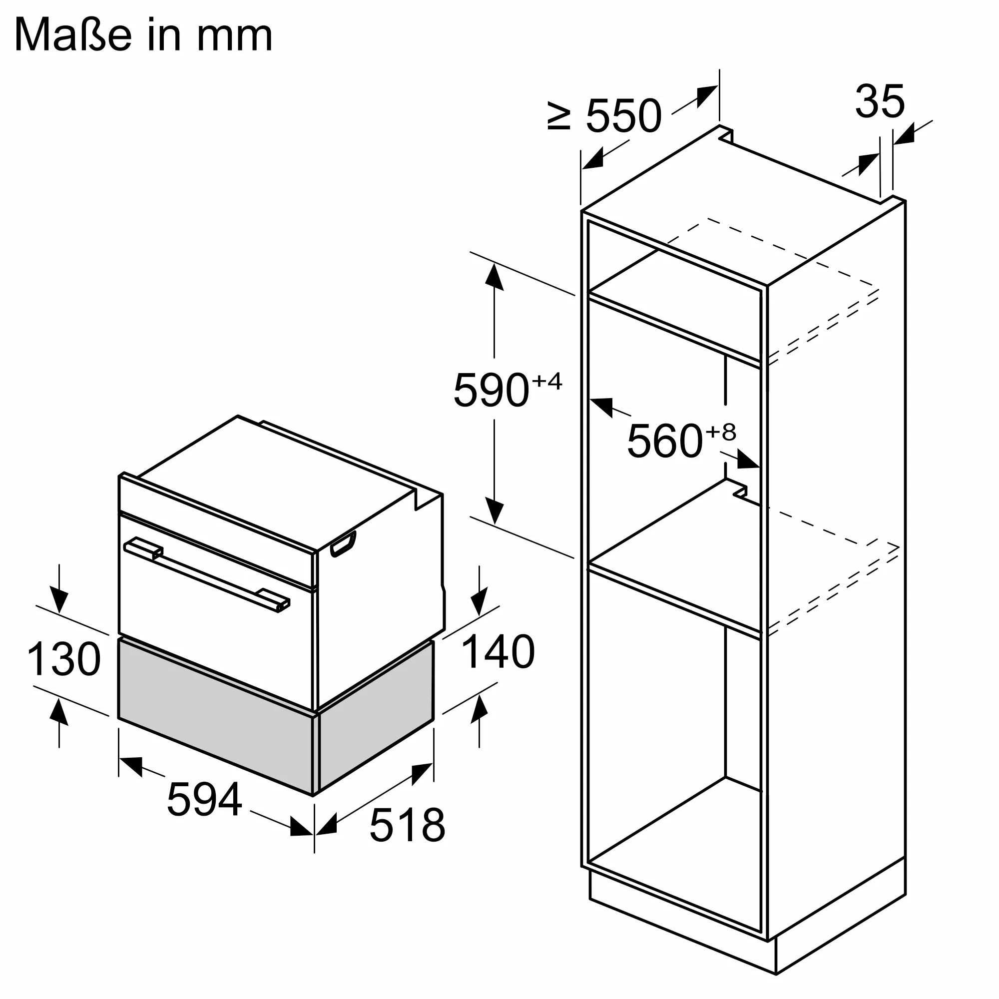 - Nischenmaße (HxBxT): 140 mm x 560 mm - 568 mm x 550 mm