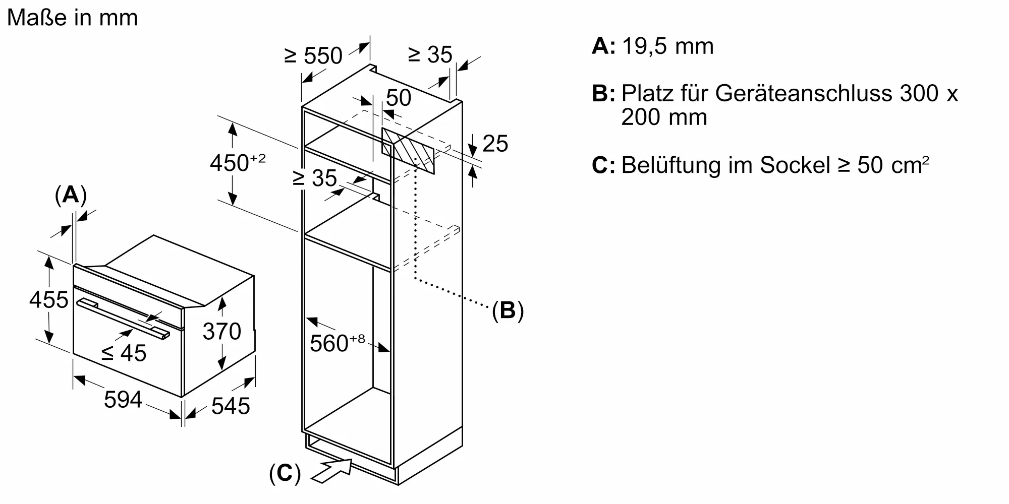 - Nischenmaße (HxBxT): 450 mm x 560 mm x 550 mm