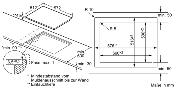 - Einbaumaße: (H/B/T) 45 mm x 560 mm x 500 mm