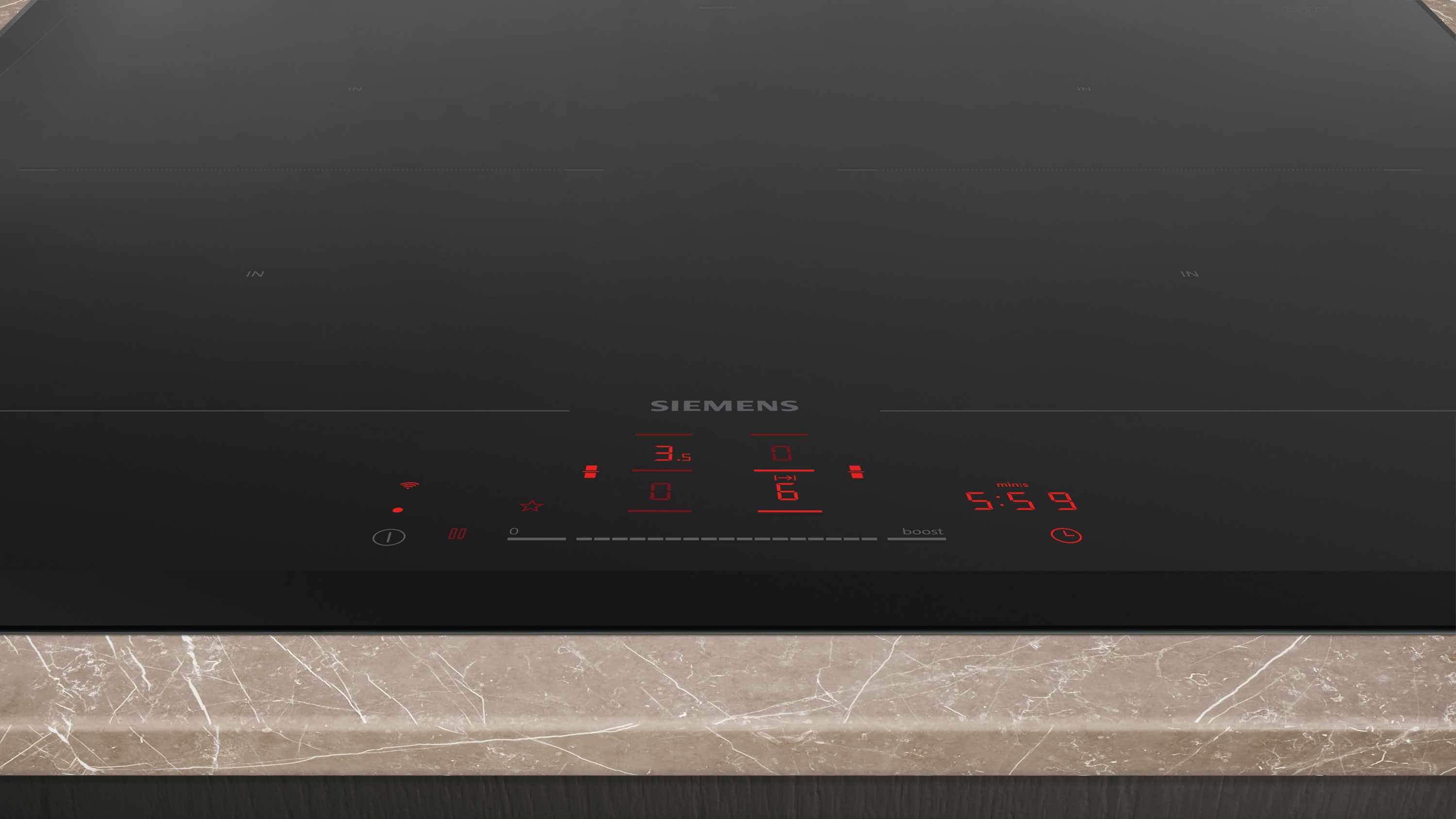- HomeConnect-fähig über WLAN: Überprüfen Sie, ob das Kochfeld auch dann ausgeschaltet ist, wenn Sie nicht zu Hause sind, und suchen Sie in der Home Connect-App nach Rezepten oder zusätzlichen Funktionen.