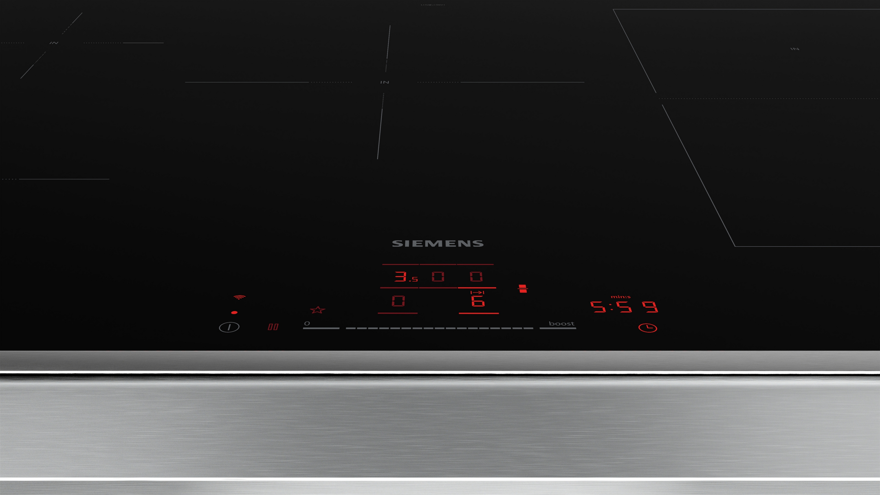 - HomeConnect-fähig über WLAN: Überprüfen Sie, ob das Kochfeld auch dann ausgeschaltet ist, wenn Sie nicht zu Hause sind, und suchen Sie in der Home Connect-App nach Rezepten oder zusätzlichen Funktionen.