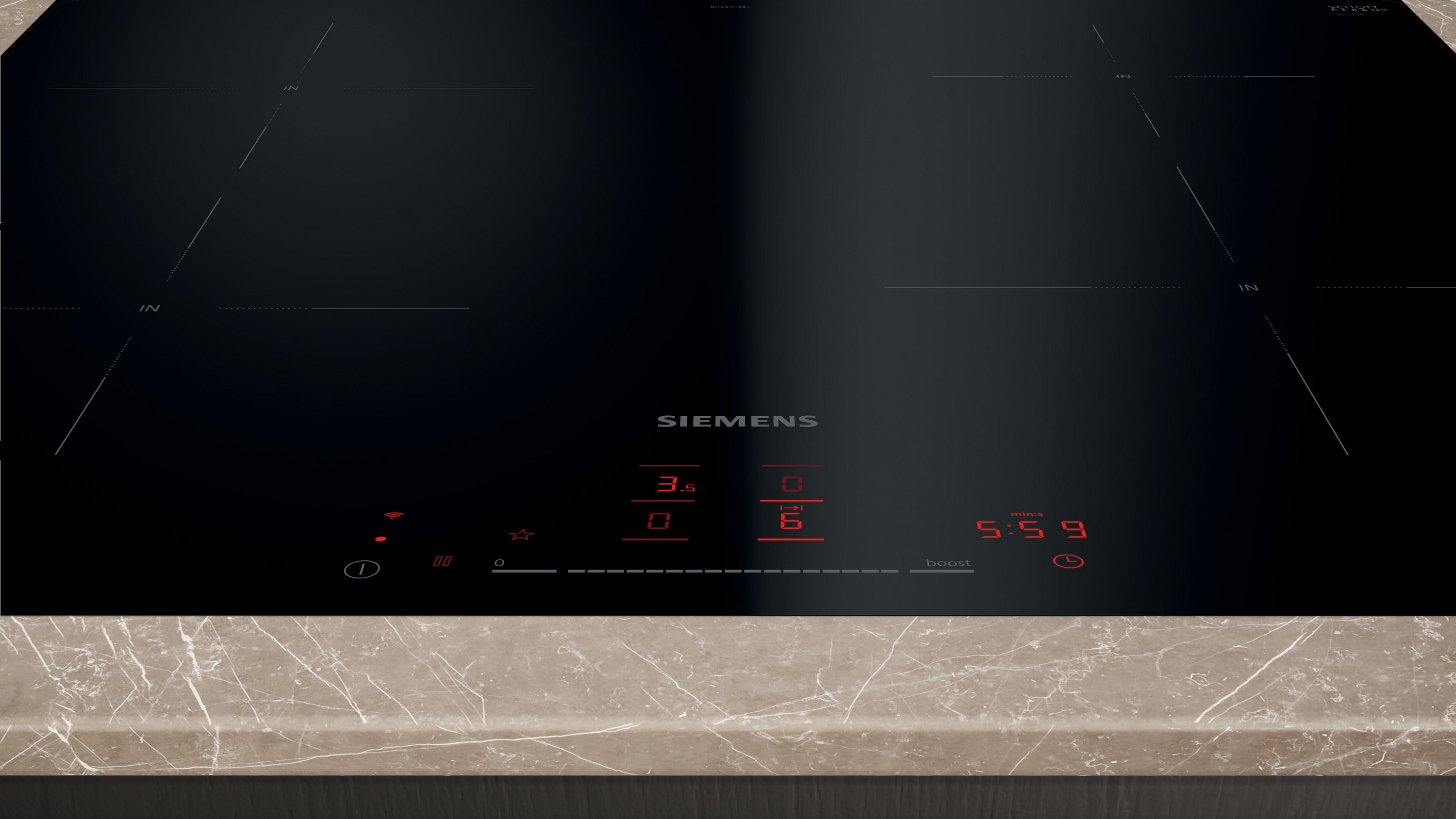 - HomeConnect-fähig über WLAN: Überprüfen Sie, ob das Kochfeld auch dann ausgeschaltet ist, wenn Sie nicht zu Hause sind, und suchen Sie in der Home Connect-App nach Rezepten oder zusätzlichen Funktionen.