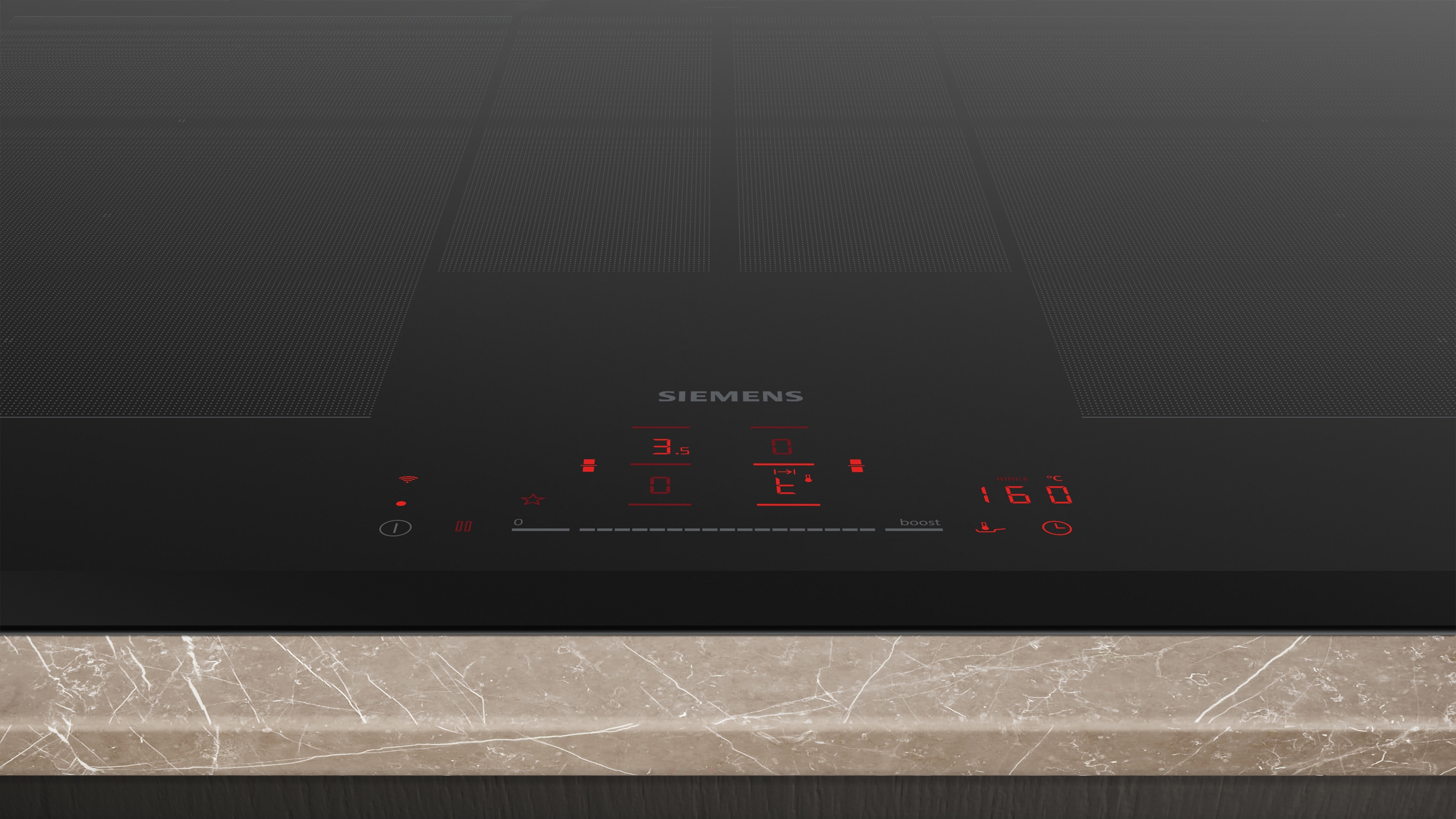 - HomeConnect-fähig über WLAN: Überprüfen Sie, ob das Kochfeld auch dann ausgeschaltet ist, wenn Sie nicht zu Hause sind, und suchen Sie in der Home Connect-App nach Rezepten oder zusätzlichen Funktionen.