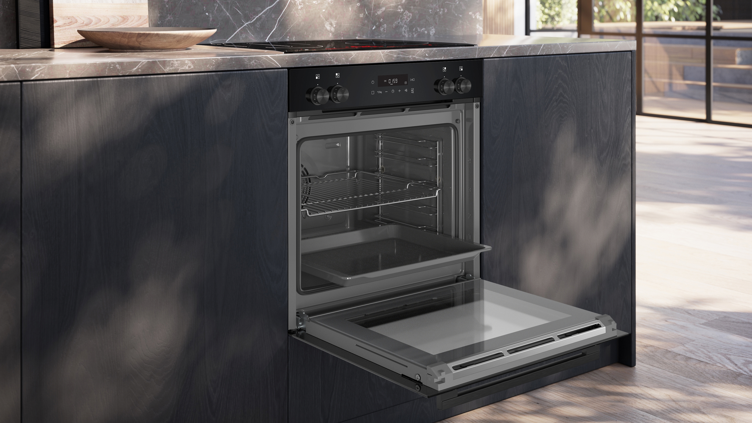 | Farbe / Material Backofentür: | Deep black inox |