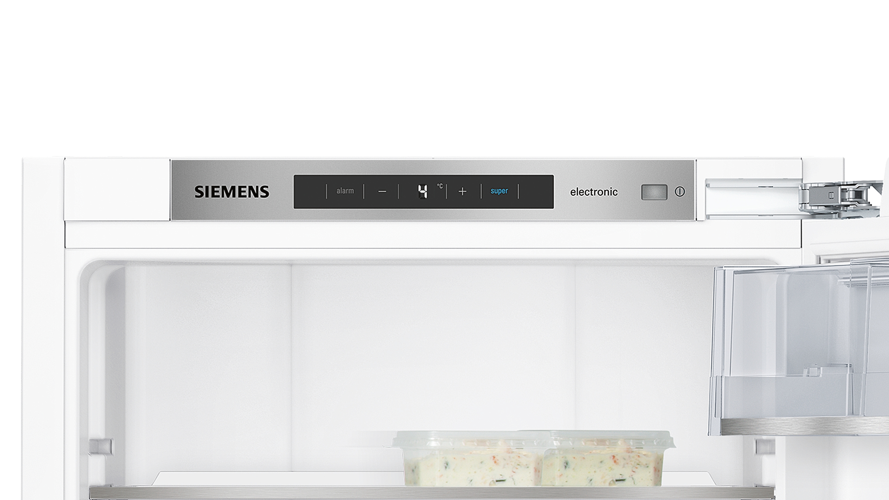 | Bedienelemente: | Superschalter Kühlen, Temperaturanzeige für Kühlen, Warnsignal Tür offen |