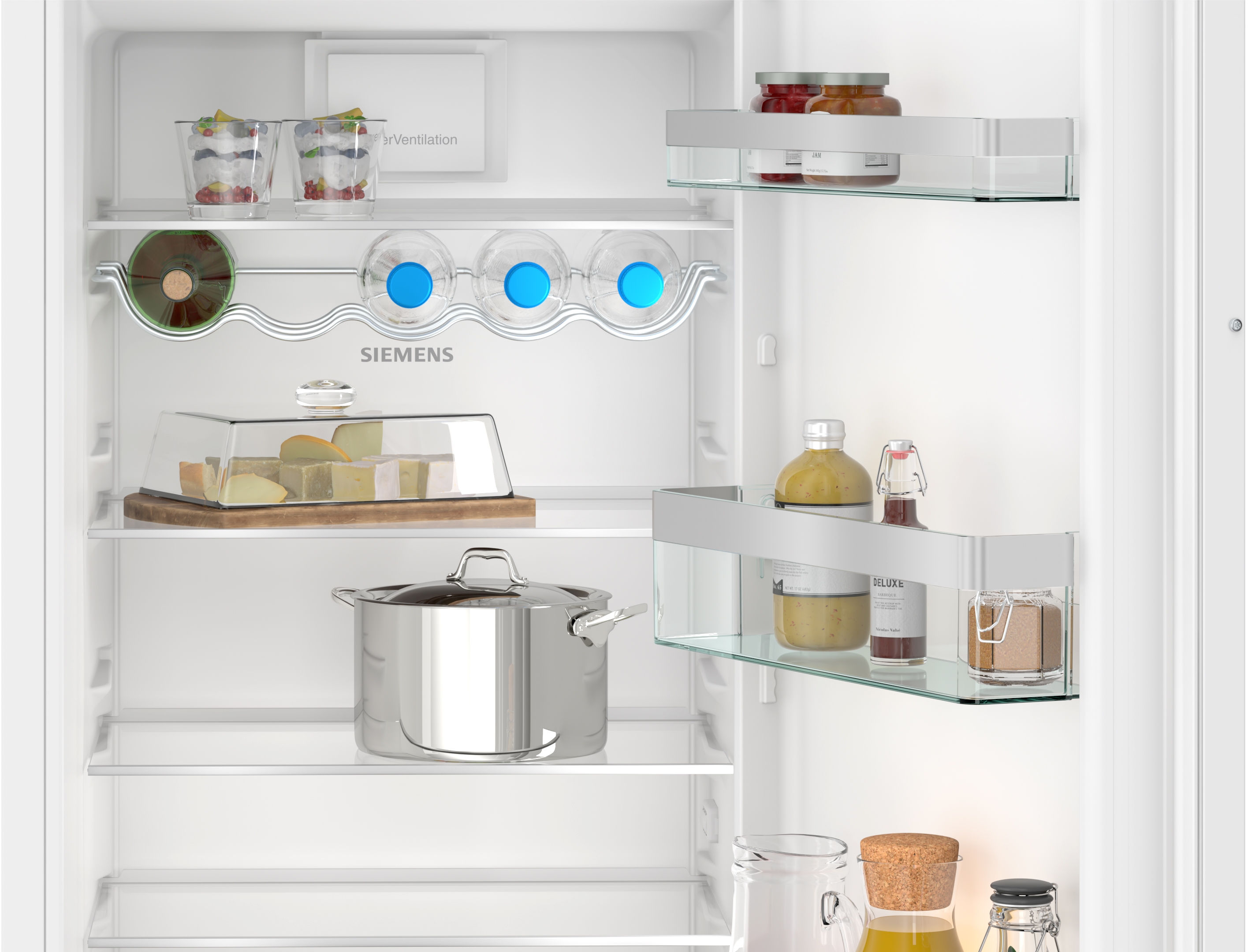 Einbau-Kühlschrank mit **** Gefrierfach, besonders stabilen Türablagen, heller LED-Beleuchtung und autoAirflow für optimale Lagerbedingungen der Lebensmittel.