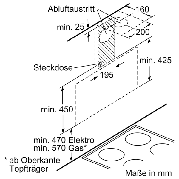 - Für Wandmontage über Kochstellen