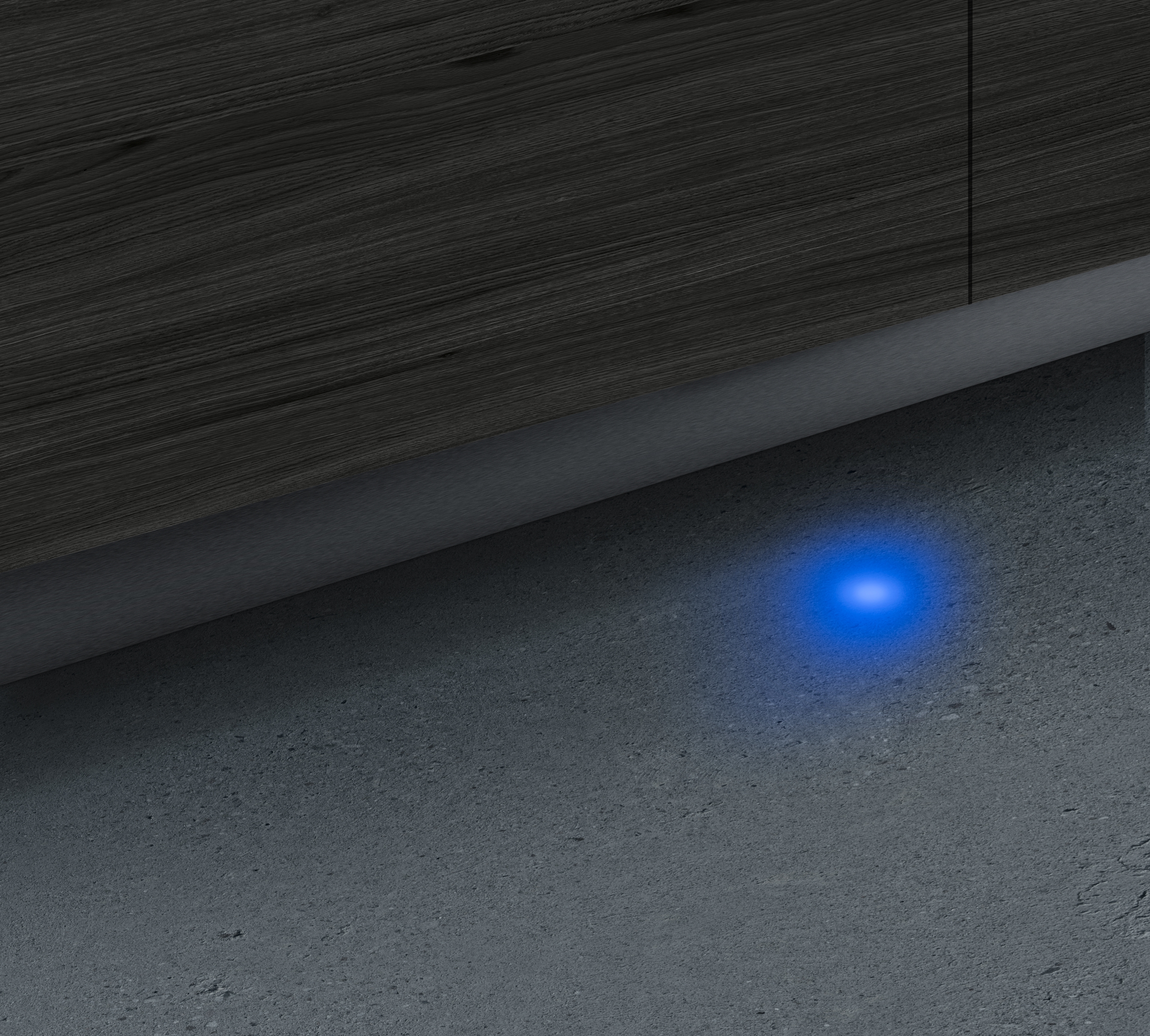 Professioneller wifi-fähiger Geschirrspüler, dessen Programmstatus durch das infoLight auf den Boden projiziert wird und über Smartphone oder per Sprachsteuerung bedient werden kann.