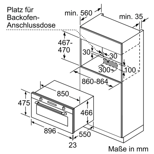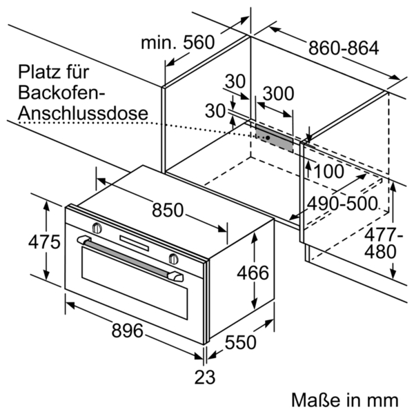 - Nischenmaße (HxBxT): 480 mm x 860 mm x 560 mm