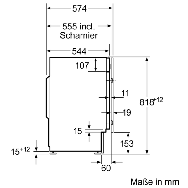 - verstellbare Sockelhöhe: 15 cm