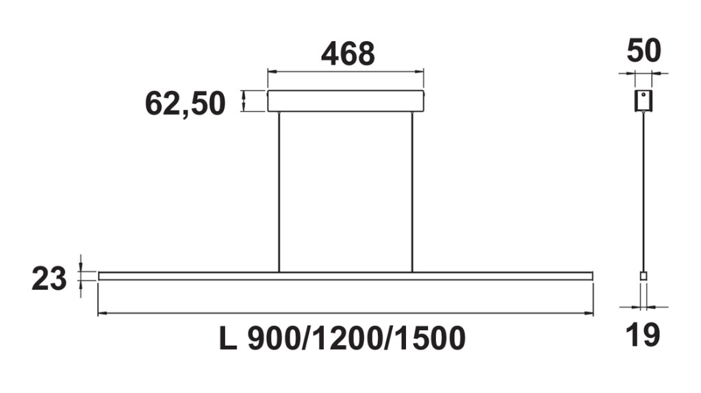 Pendelleuchte. Aluminiumgehäuse, edelstahlfarbig eloxiert, Abdeckung Acrylglas weiß oder schwarz. Inkl. Konverter und Fernbedienung.
