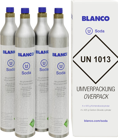 Mit dem BLANCO Soda Starterkit erwerben Sie einmalig die CO2-Zylinder und haben somit 5 Zylinder zuhause. Sobald 4 Zylinder leer sind, bestellen Sie das BLANCO Soda REFILL 4ER CO2-ZYLINDER (526139) und bekommen 4 befüllte CO2-Zylinder bequem nach Hause geliefert.
