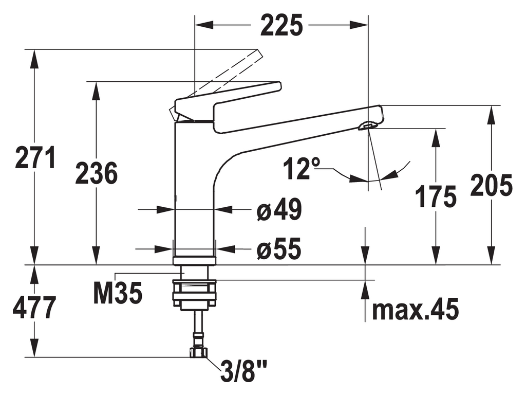 Schwenkbereich 160° (Neoperl® Cascade®)