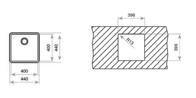 - Arbeitsplattenausschnitt LxB ca. 396x396 mm