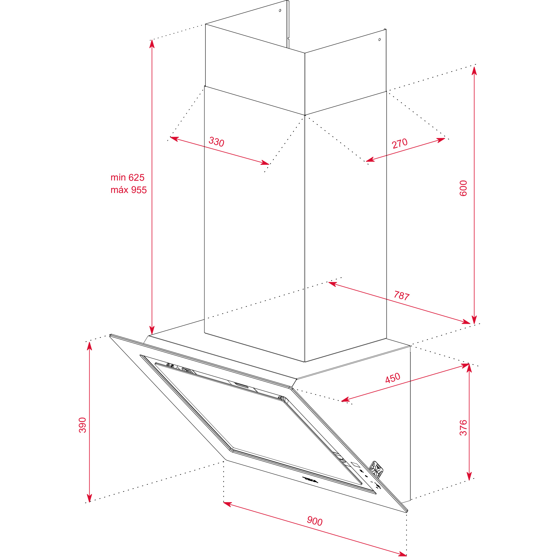 - Kopffrei-Dunstabzugshaube 90 cm