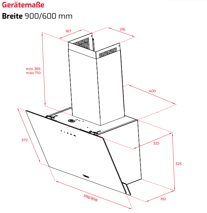 - Absaugleistung min. 380 m³/h - max. 460 m³/h Abluftbetrieb