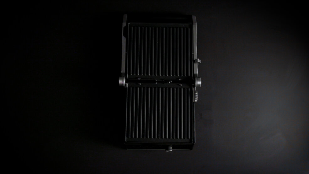 Zweiseitig verwendbare Grillplatten: glatte Seite (Sandwich) und geriffelte Seite (Grillen)