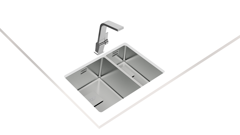 - 3in1 Flexinstallation für Unterbau, aufliegenden oder flächenbündigen Einbau R15 Radius für leichte Reinigung
