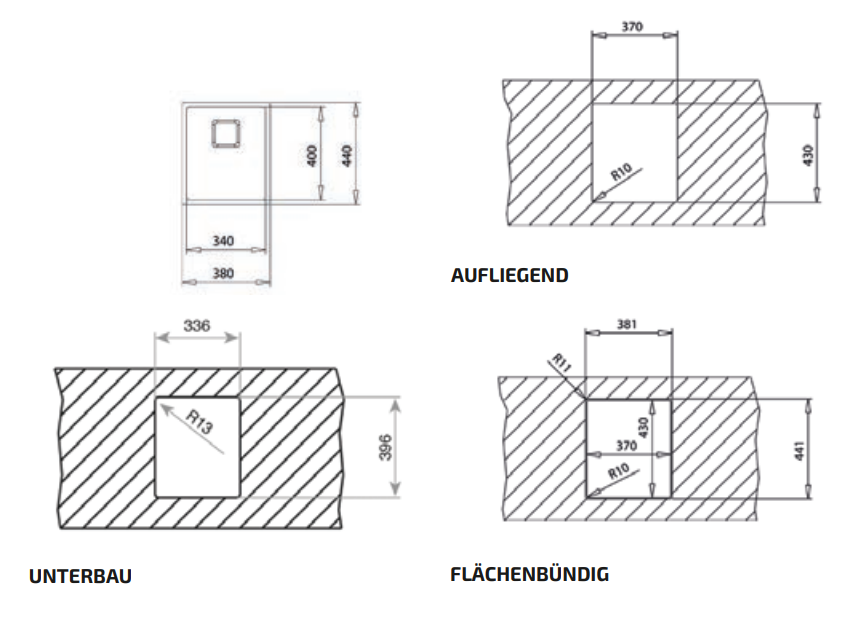 - 3in1 Flexinstallation für Unterbau, aufliegenden oder flächenbündigen Einbau
