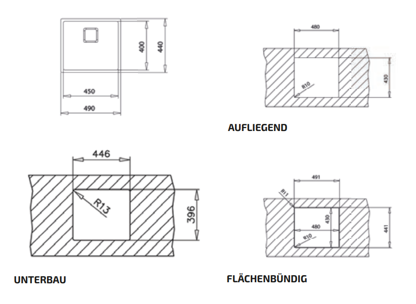 - Arbeitsplattenausschnitt LxB ca. 480x430 mm