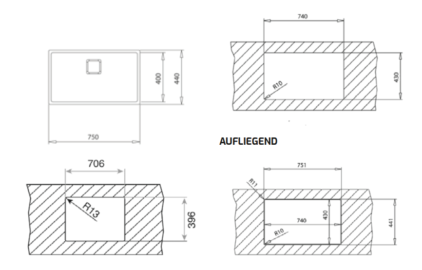 - 3in1 Flexinstallation für Unterbau, aufliegenden oder flächenbündigen Einbau