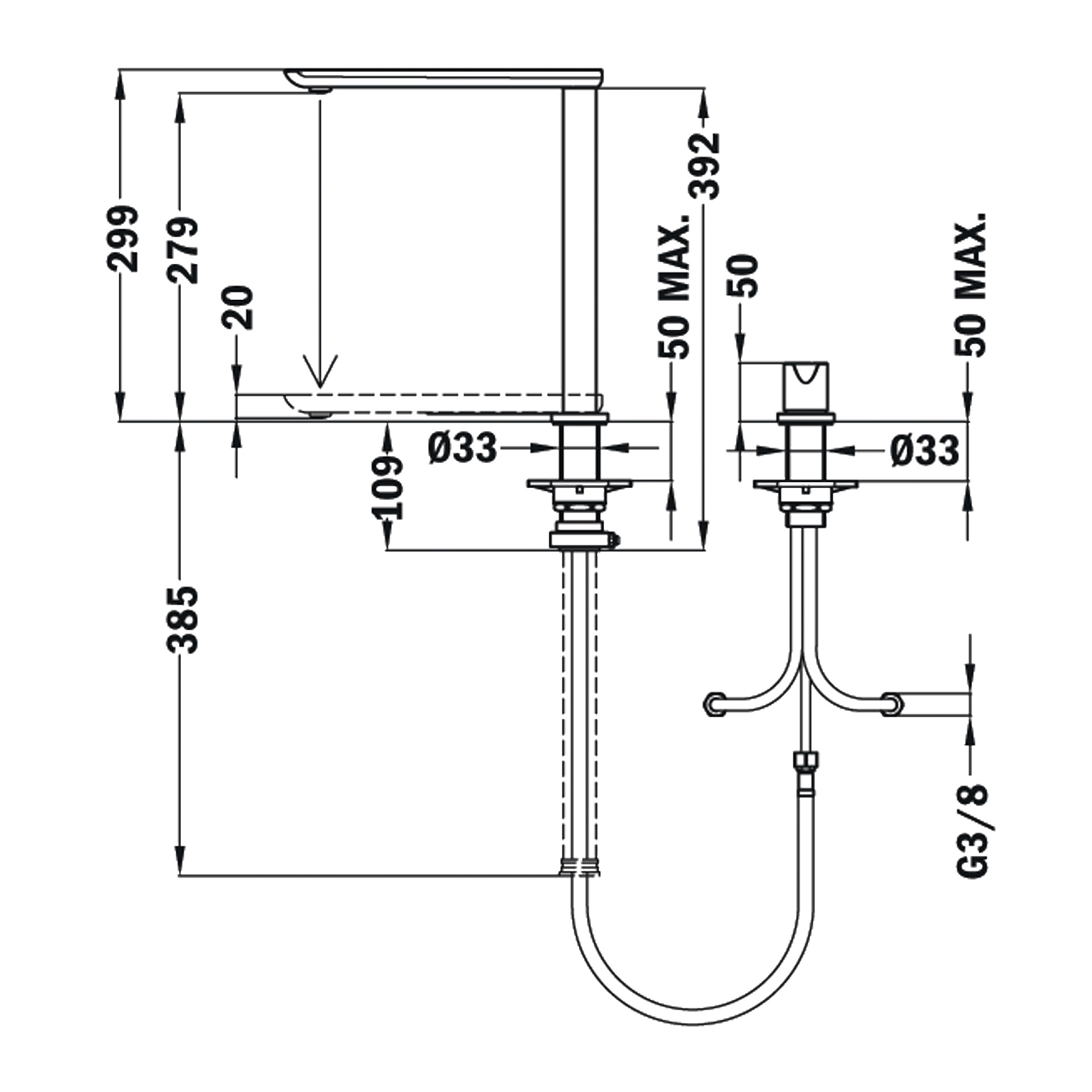 - 2 Hahnlöcher notwendig