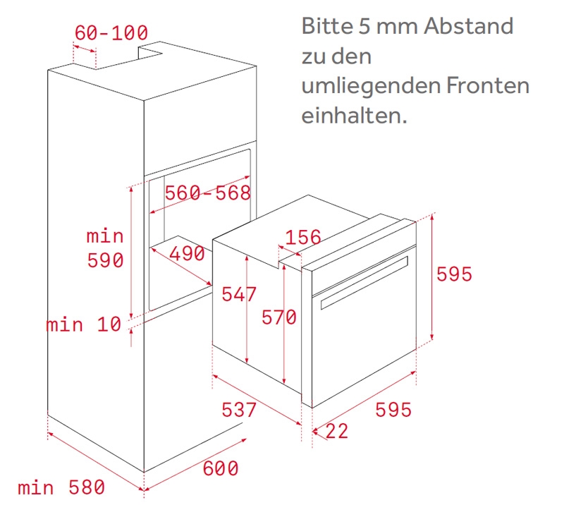 Abmessungen: 595 x 595 x 559 mm (B,H,T)