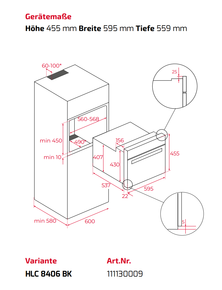 - Höhe 455 mm / Breite 595 mm / Tiefe 559 mm