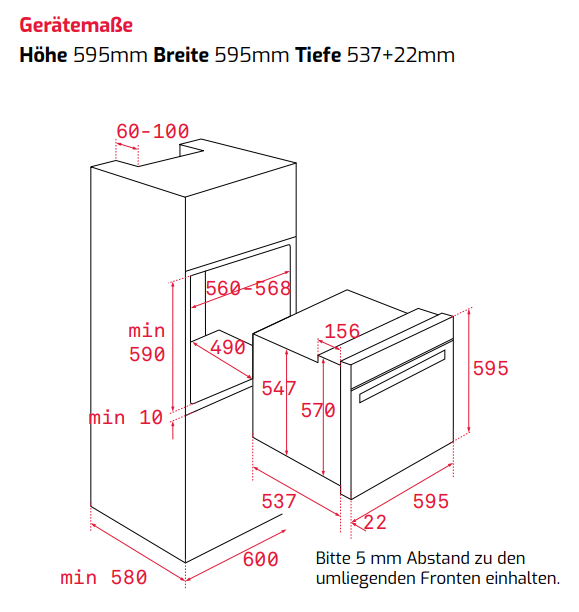 Nischenmaße (H x B x T): 600 x 560 x 555 mm