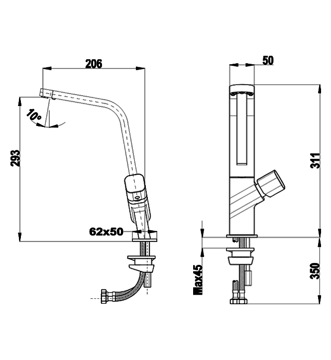 3in1 Flexinstallation für Unterbau, aufliegenden oder flächenbündigen Einbau R15 Radius für leichte Reinigung