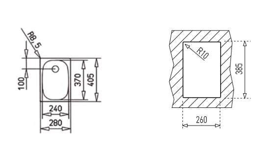 - Arbeitsplattenausschnitt LxB ca. 260x385 mm