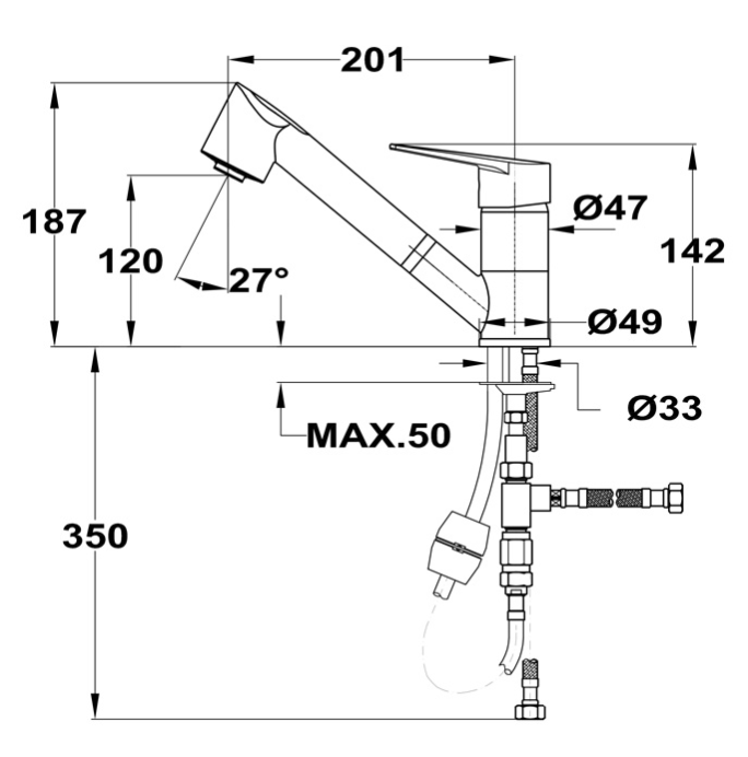 - 3/8" flexible Anschlußschläuche