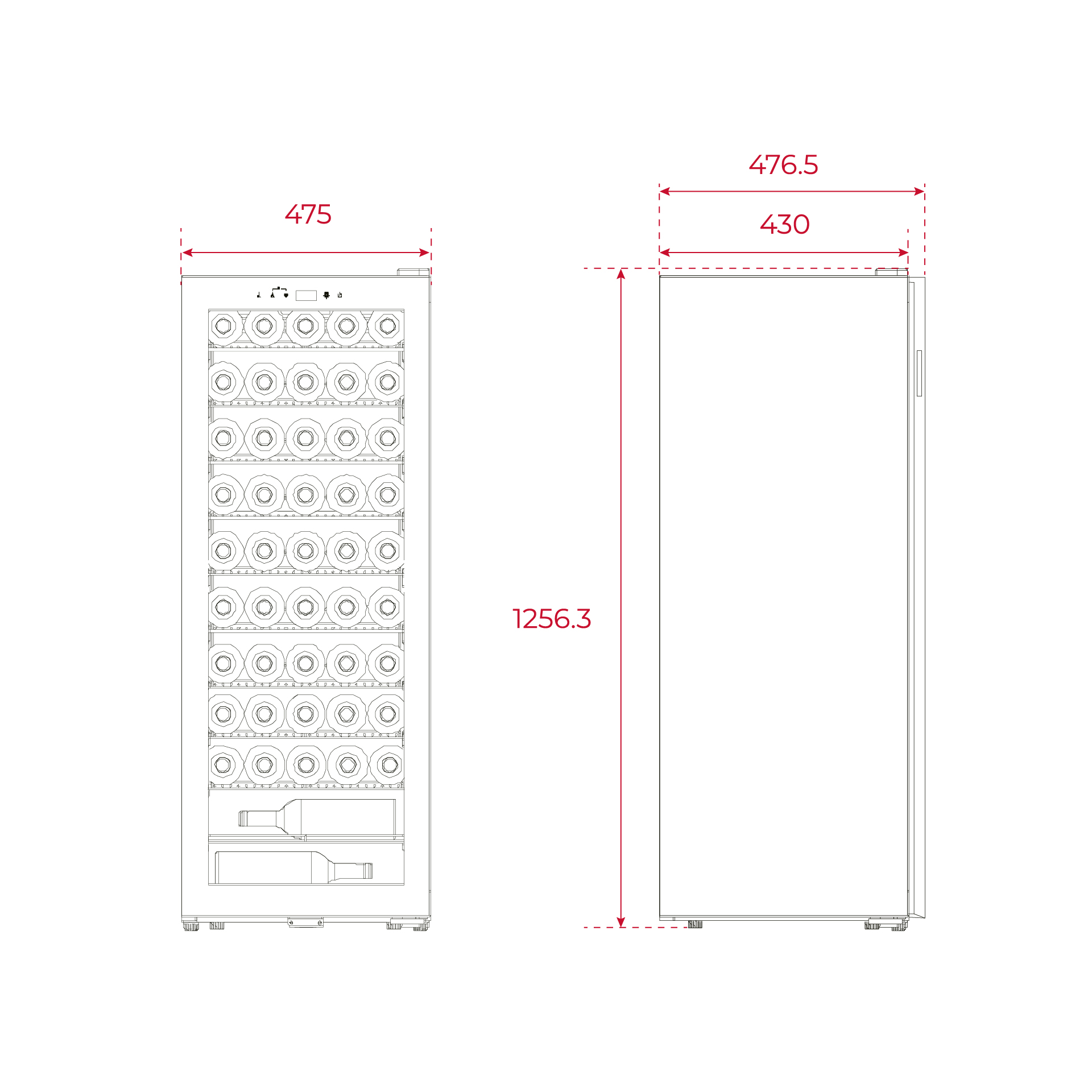 - Höhe (mm): 1256.3 / Breite (mm): 477 / Tiefe (mm): 475