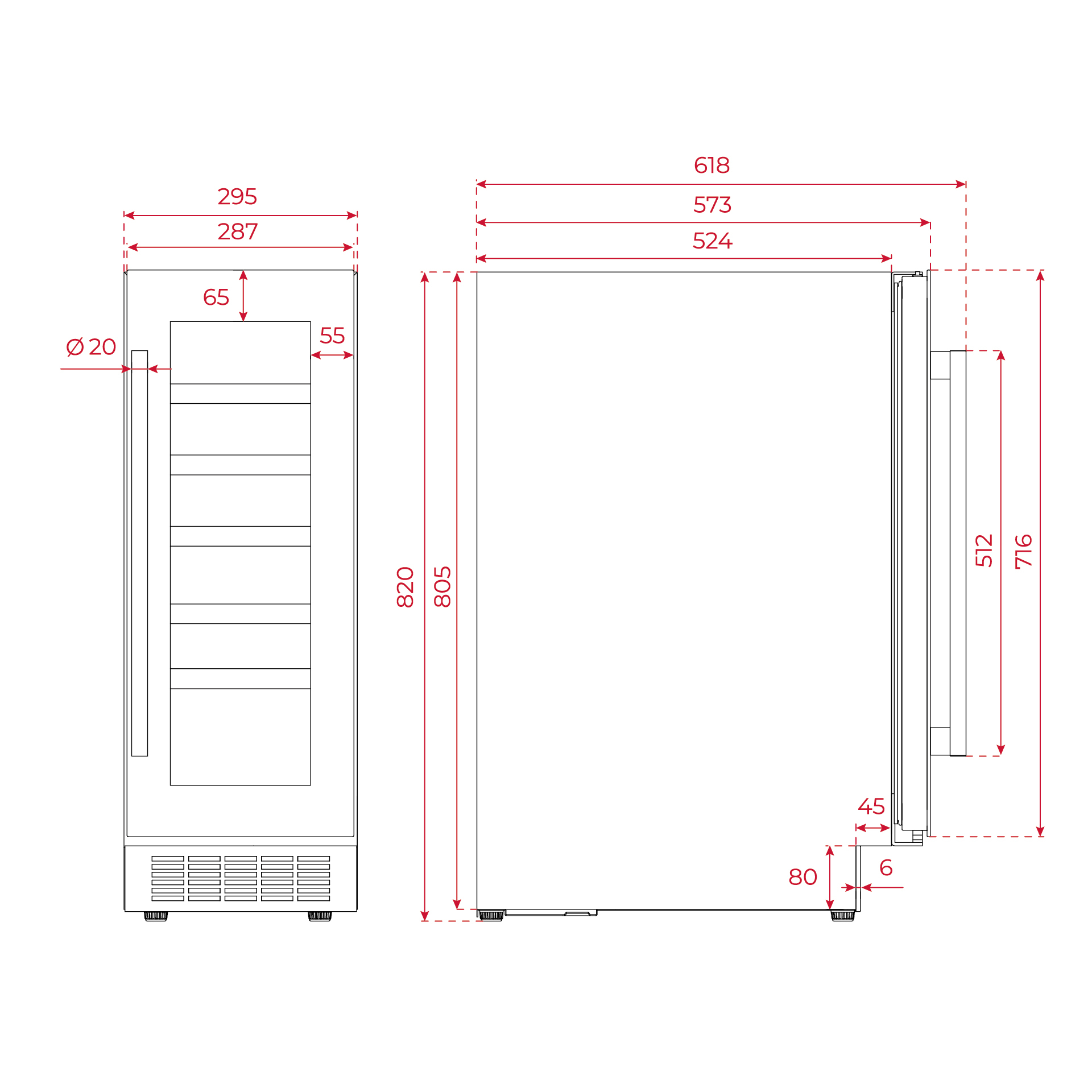 - Höhe (mm): 820 / Breite (mm): 295 / Tiefe (mm): 573
