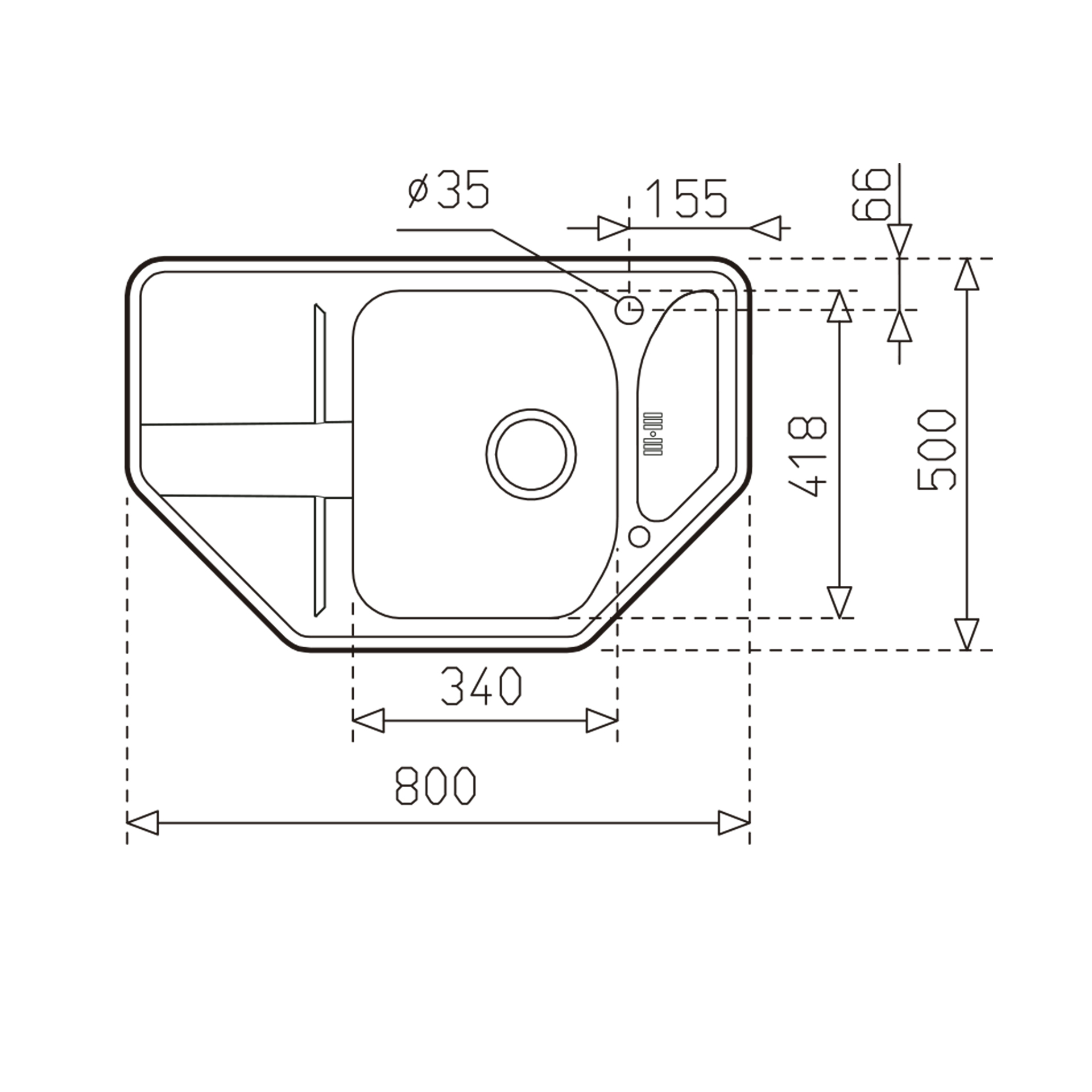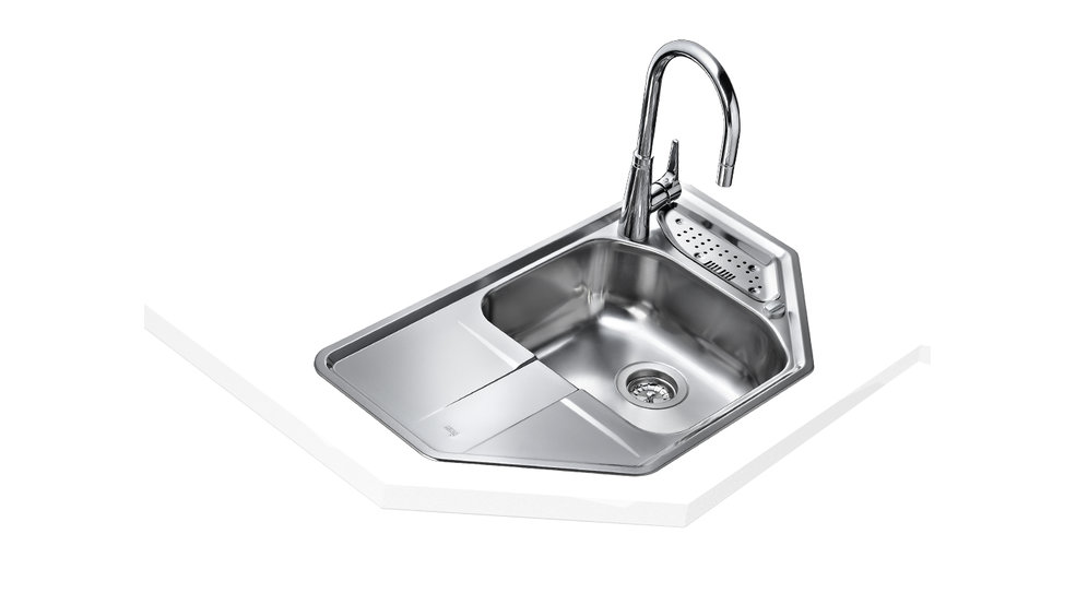 - Edelstahl-Einbau-Eckspüle aus 18/10 Edelstahl